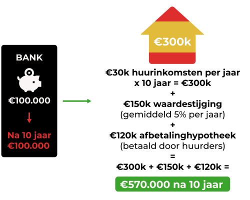 Hefboomwerking: Met geleend geld kun je investeren in een woning van hogere waarde dan wanneer je uitsluitend eigen middelen zou gebruiken.